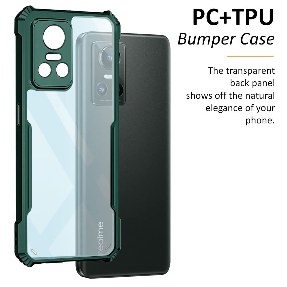 Shockproof Crystal Clear Realme GT Neo 3 5G Back Cover Case | 360 Degree Protection | Transparent Mobile Back Cover Case for Realme GT Neo 3 5G | Hybrid PC + TPU (Green Bumper)