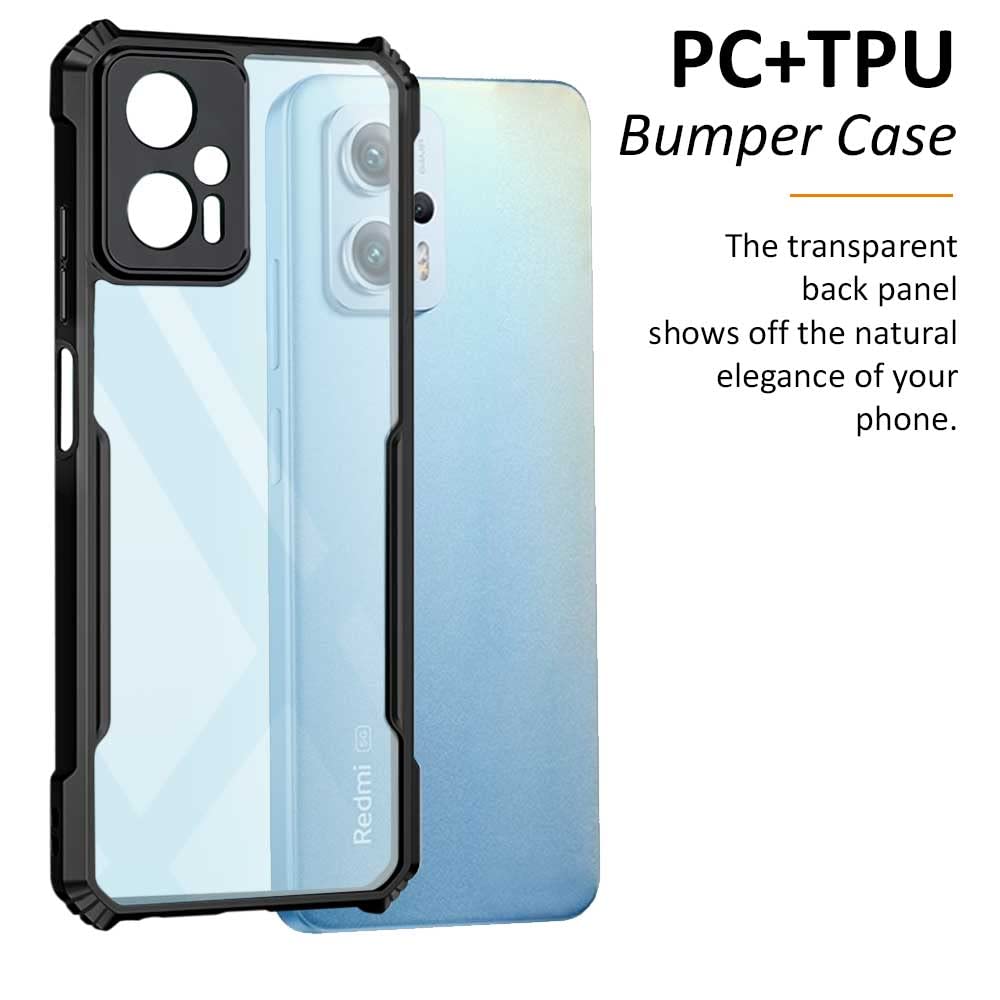Shockproof Crystal Clear Redmi K50i 5G Back Cover Case | 360 Degree Protection | Transparent Mobile Back Cover Case for Xiaomi Redmi K50i 5G | Hybrid PC + TPU (Black Bumper)