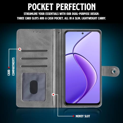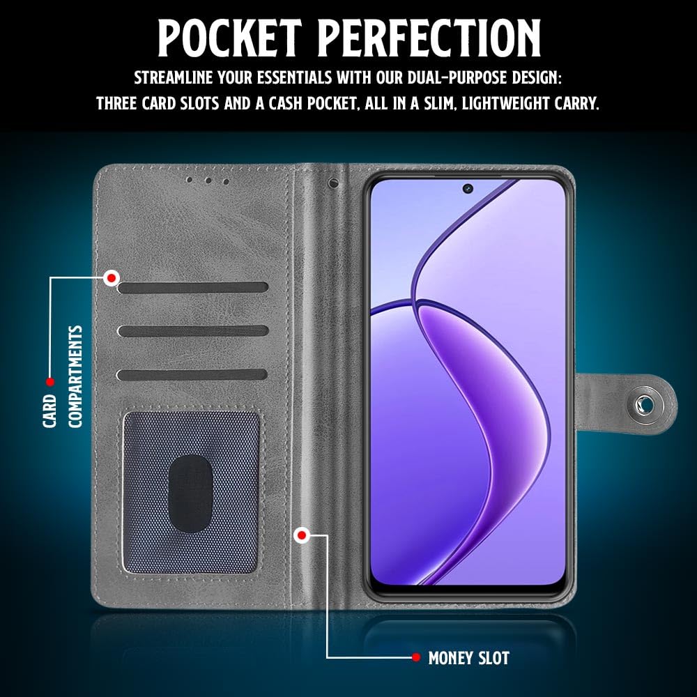 Shock Proof Flip Cover Back Case for Realme 13 5G | Magnetic Wallet Leather Case with Stand