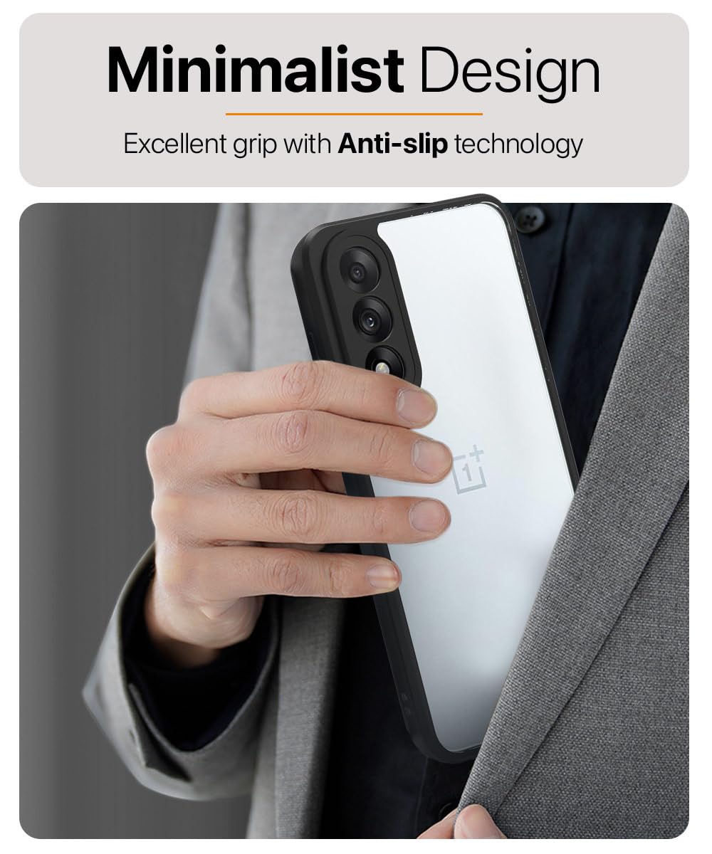 The Shockproof Hybrid Back Cover for 1+ OnePlus Nord 5 | Hard Slim fit Back Case | PC & TPU | Clear Transparent Case ? Black is designed with premium quality materials to provide superior protection, durability, and style for your smartphone. It offers a perfect balance between functionality and aesthetics, ensuring your device stays safe from scratches, impacts, and daily wear. Engineered with precision, it features accurate cutouts for ports, buttons, and cameras, making it highly convenient for everyday use. The slim and lightweight design ensures that your device retains its sleek profile without adding unnecessary bulk. Whether it is a nano film tempered glass, a hybrid back case, or a camera lens protector, each product is created with attention to detail to enhance the user experience and extend the life of your smartphone. The material used ensures long-lasting clarity, anti-scratch performance, and resistance against fingerprints and smudges. It is the ideal choice for users who want both style and substance in their smartphone accessories. This product from reflects innovation and craftsmanship, making it a reliable accessory that safeguards your investment while maintaining modern appeal.