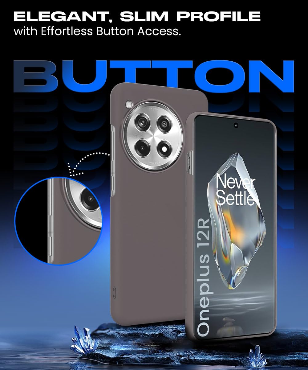Slim Frameless Back Cover for 1+ OnePlus 12R 5G | Ultra Thin Lightweight Design & Camera Protection | Soft Matte Silicone Flexible Mobile Case (Grey)