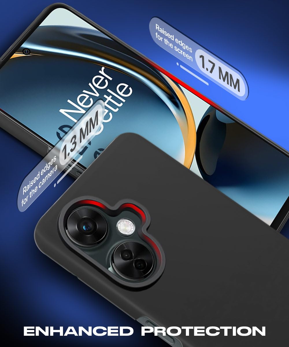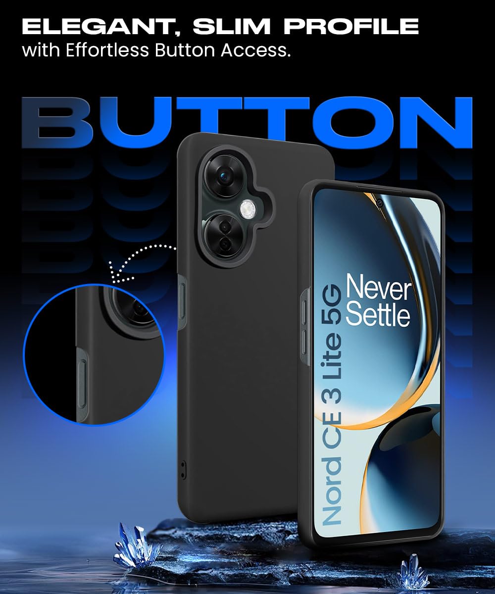 Slim Frameless Back Cover for 1+ OnePlus Nord CE 3 Lite 5G | Ultra Thin Lightweight Design & Camera Protection | Soft Matte Silicone Flexible Mobile Case (Black)