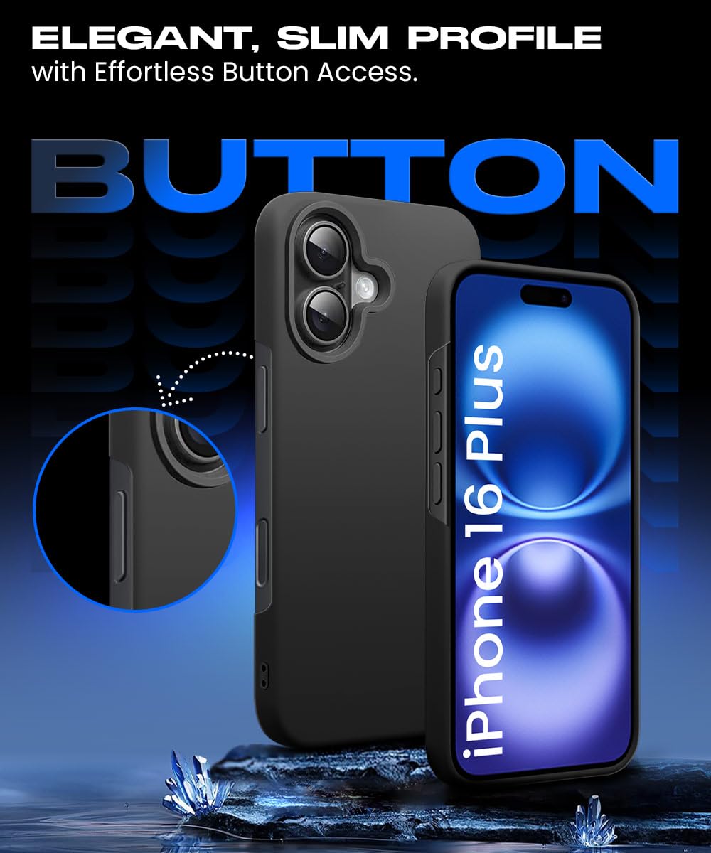 Slim Frameless Back Cover for iPhone 16 Plus | Ultra Thin Lightweight Design & Camera Protection | Soft Matte Silicone Flexible Mobile Case (Black)