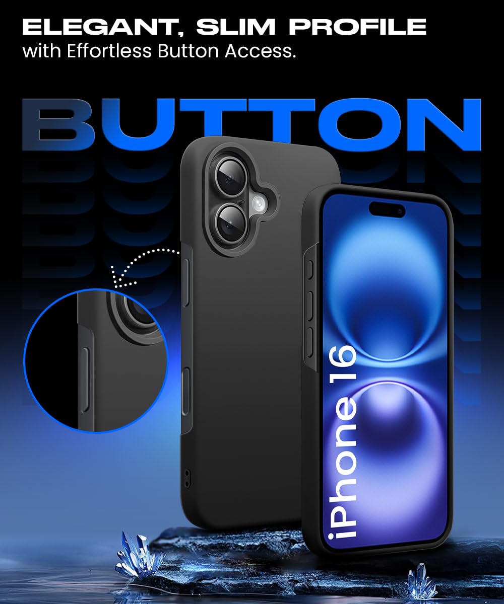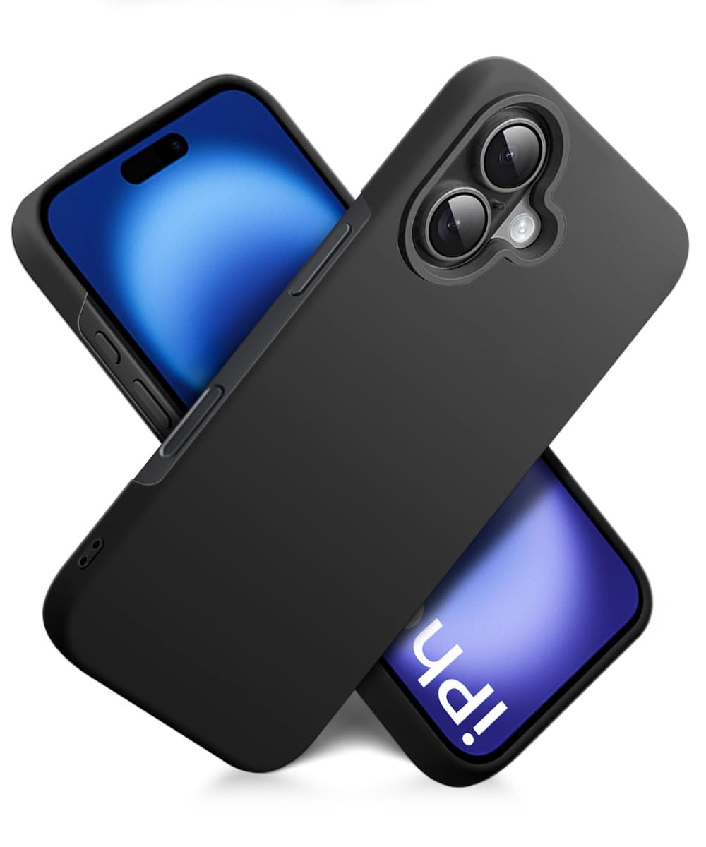 Slim Frameless Back Cover for iPhone 16 | Ultra Thin Lightweight Design & Camera Protection | Soft Matte Silicone Flexible Mobile Case (Black)