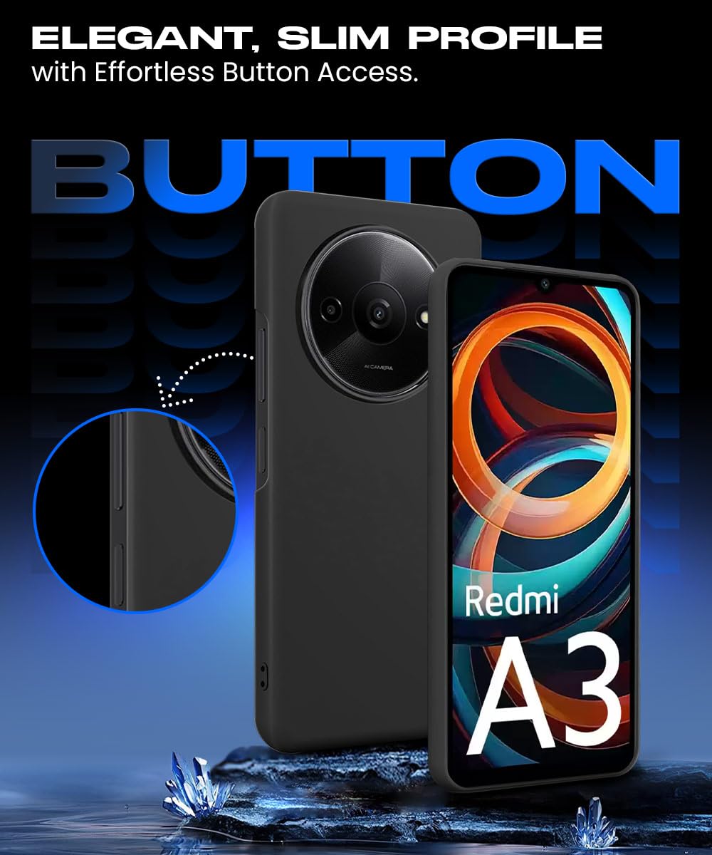 Slim Frameless Back Cover for Mi Redmi A3 | Redmi A3X | Poco C61 | Ultra Thin Lightweight Design & Camera Protection | Soft Matte Silicone Flexible Mobile Case (Black)