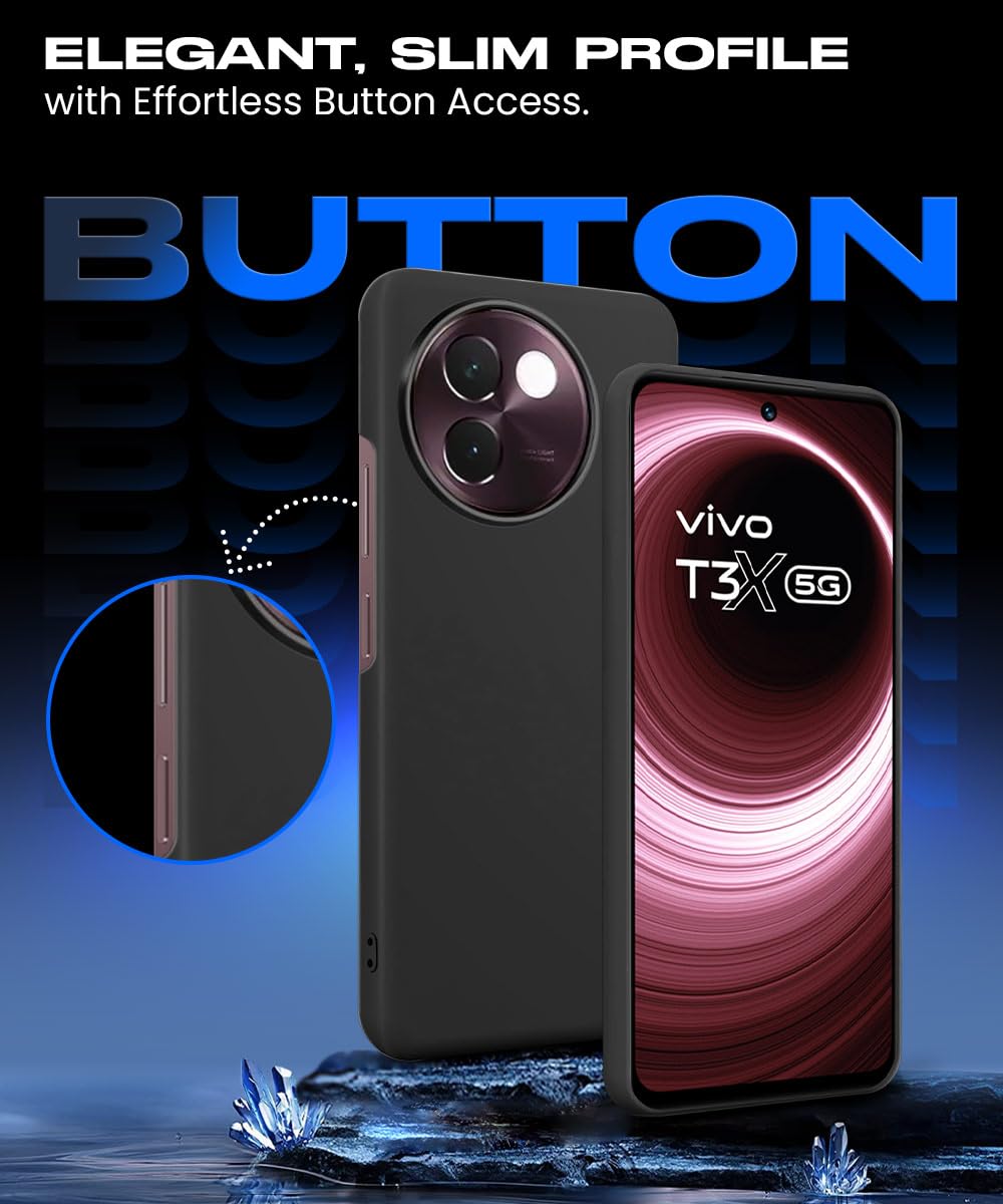 Slim Frameless Back Cover for Vivo T3x 5G | Ultra Thin Lightweight Design & Camera Protection | Soft Matte Silicone Flexible Mobile Case (Black)