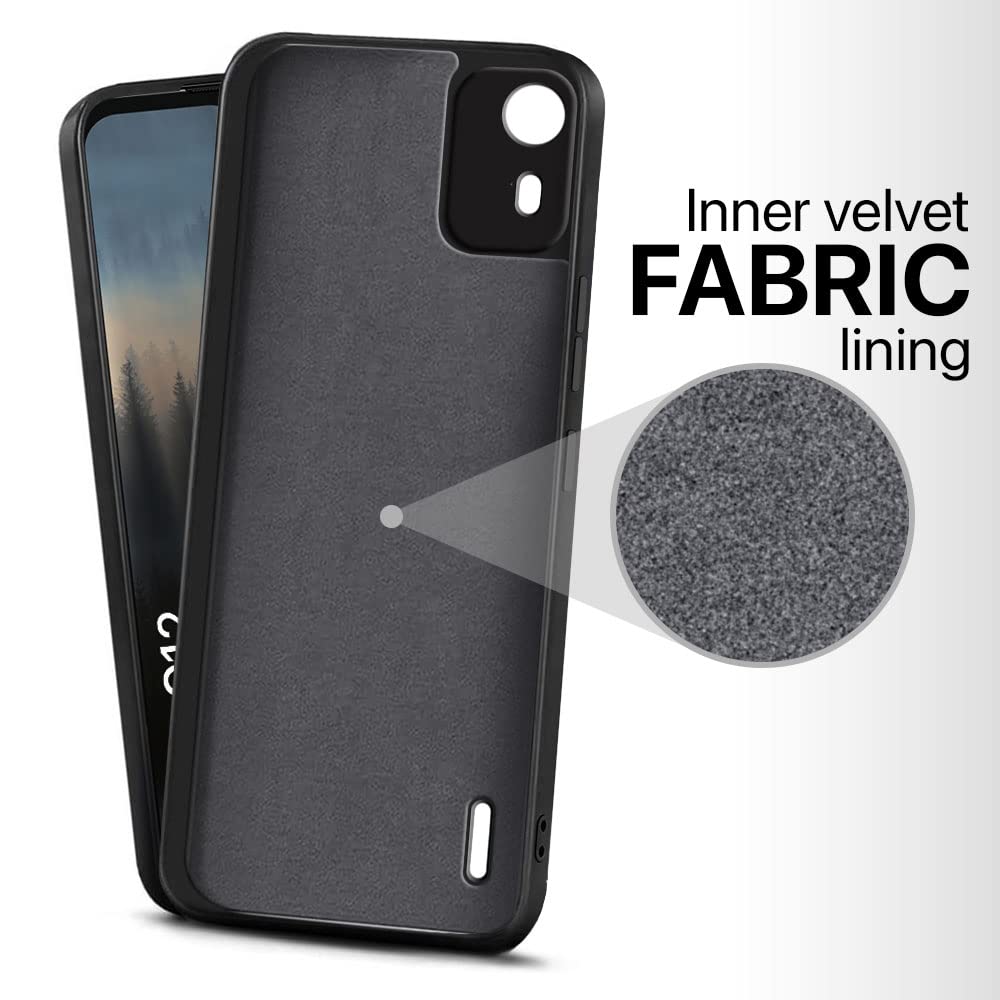 Slim Ultra Soft Rubberised Back Case Cover for Nokia C12 | Nokia C12 Pro | Inner Velvet Fabric Lining | Matte Silicone Flexible Camera Protection Back Case – Black