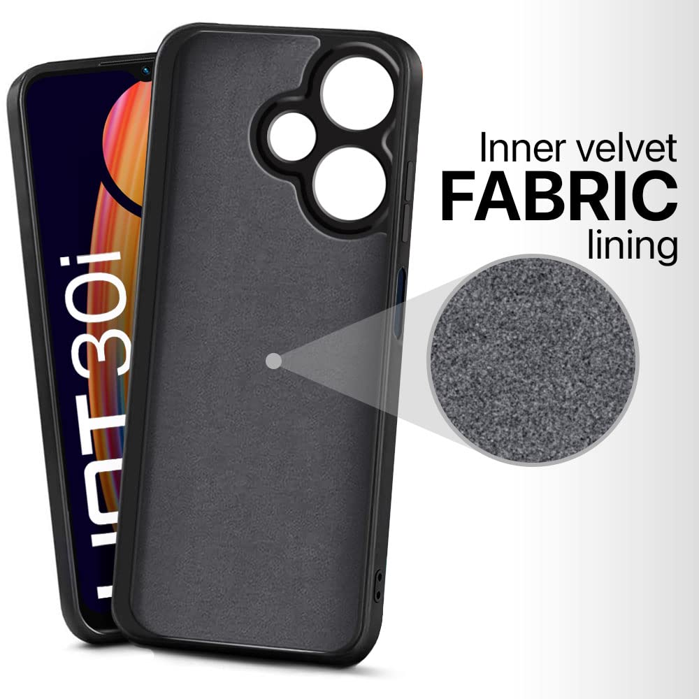 Slim Ultra Soft Rubberised Back Cover for Infinix Hot 30i 4G | Inner Velvet Fabric Lining | Matte Silicone Flexible Camera Protection Back Case – Black