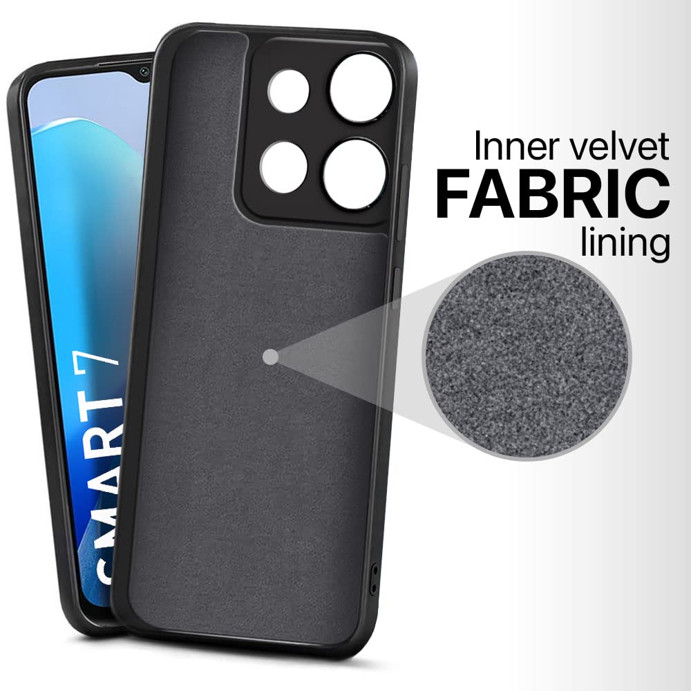 Slim Ultra Soft Rubberised Back Cover for Infinix Smart 7 | Inner Velvet Fabric Lining | Matte Silicone Flexible Camera Protection Back Case – Black