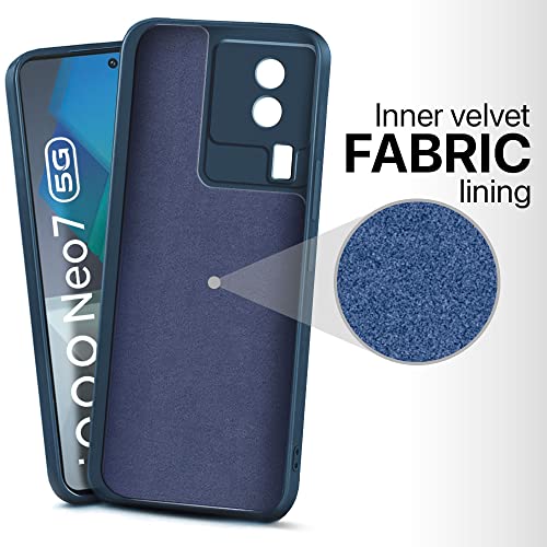 Slim Ultra Soft Rubberised Back Cover for iQOO Neo 7 | Neo 7 Pro 5G | Inner Velvet Fabric Lining | Matte Silicone Flexible Camera Protection Back Case Blue