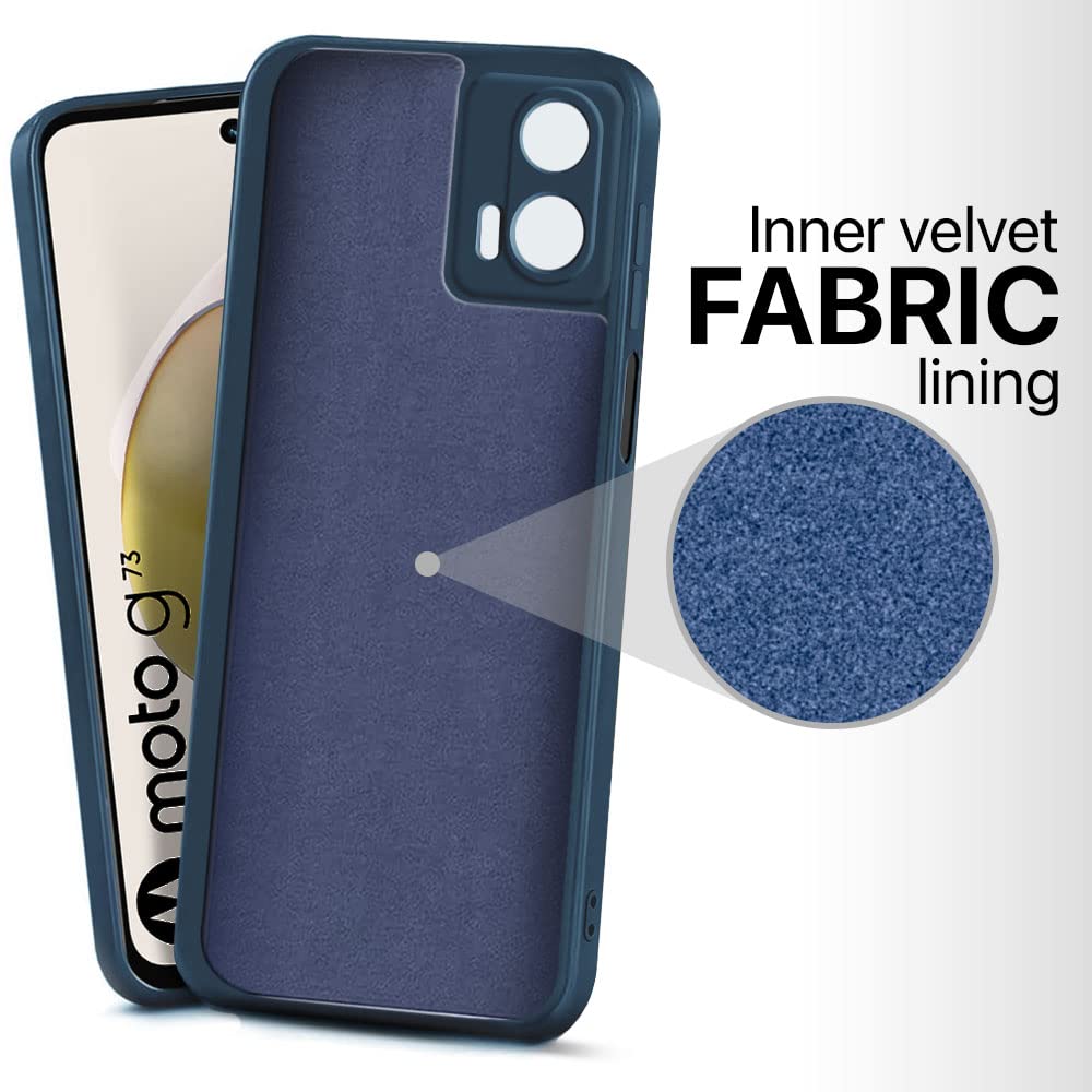 Slim Ultra Soft Rubberised Back Cover for Motorola Moto G73 5G | Inner Velvet Fabric Lining | Matte Silicone Flexible Camera Protection Back Case – Blue
