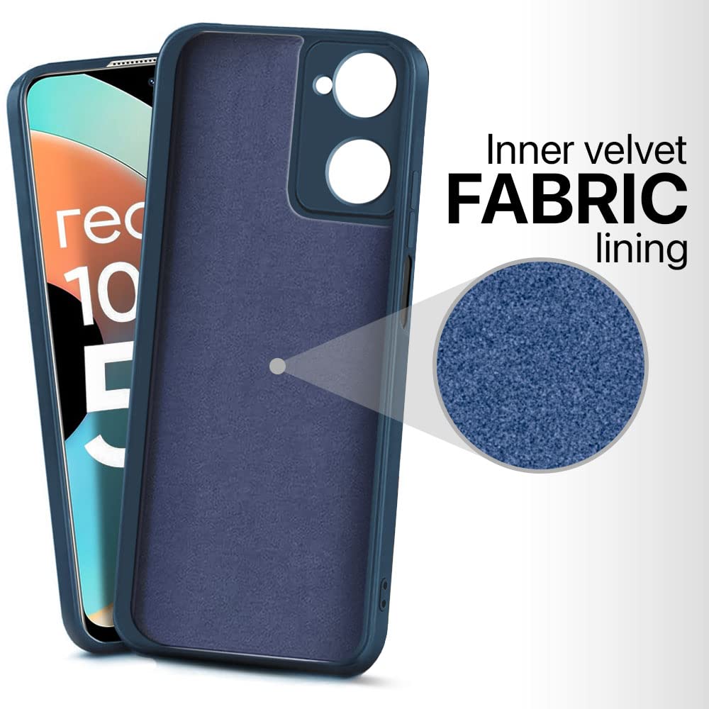 Slim Ultra Soft Rubberised Back Cover for Realme 10 Pro 5G | Inner Velvet Fabric Lining | Matte Silicone Flexible Camera Protection Back Case ? Blue