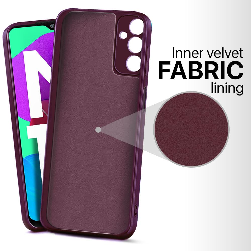 Slim Ultra Soft Rubberised Back Cover for Samsung Galaxy F13 | M13 4G | Inner Velvet Fabric Lining | Matte Silicone Flexible Camera Protection Back Case – Maroon Wine Red