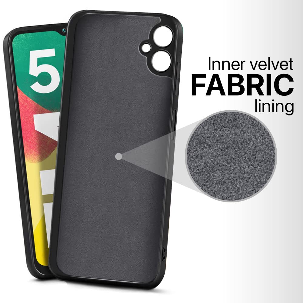 Slim Ultra Soft Rubberised Back Cover for Samsung Galaxy F14 5G | Inner Velvet Fabric Lining | Matte Silicone Flexible Camera Protection Back Case – Black