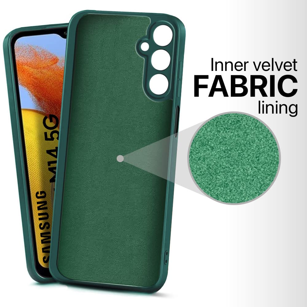 Slim Ultra Soft Rubberised Back Cover for Samsung Galaxy M14 5G | Inner Velvet Micro Fibre Fabric Lining | Matte Silicone Flexible Camera Protection Back Case – Green