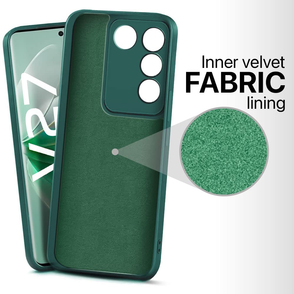 Slim Ultra Soft Rubberised Back Cover for Vivo V27 | V27 Pro 5G | Inner Velvet Fabric Lining | Matte Silicone Flexible Camera Protection Back Case – Green