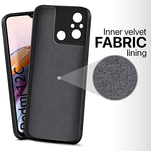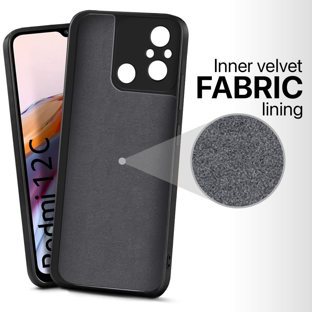 Slim Ultra Soft Rubberised Back Cover for Xiaomi Redmi 12C | Poco C55 | Inner Velvet Fabric Lining | Matte Silicone Flexible Camera Protection Back Case – Black