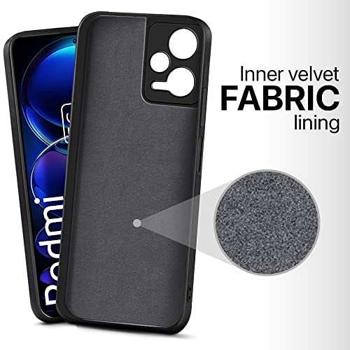 Slim Ultra Soft Rubberised Back Cover for Xiaomi Redmi Note 12 Pro 5G | Inner Velvet Fabric Lining | Matte Silicone Flexible Camera Protection Back Case Black