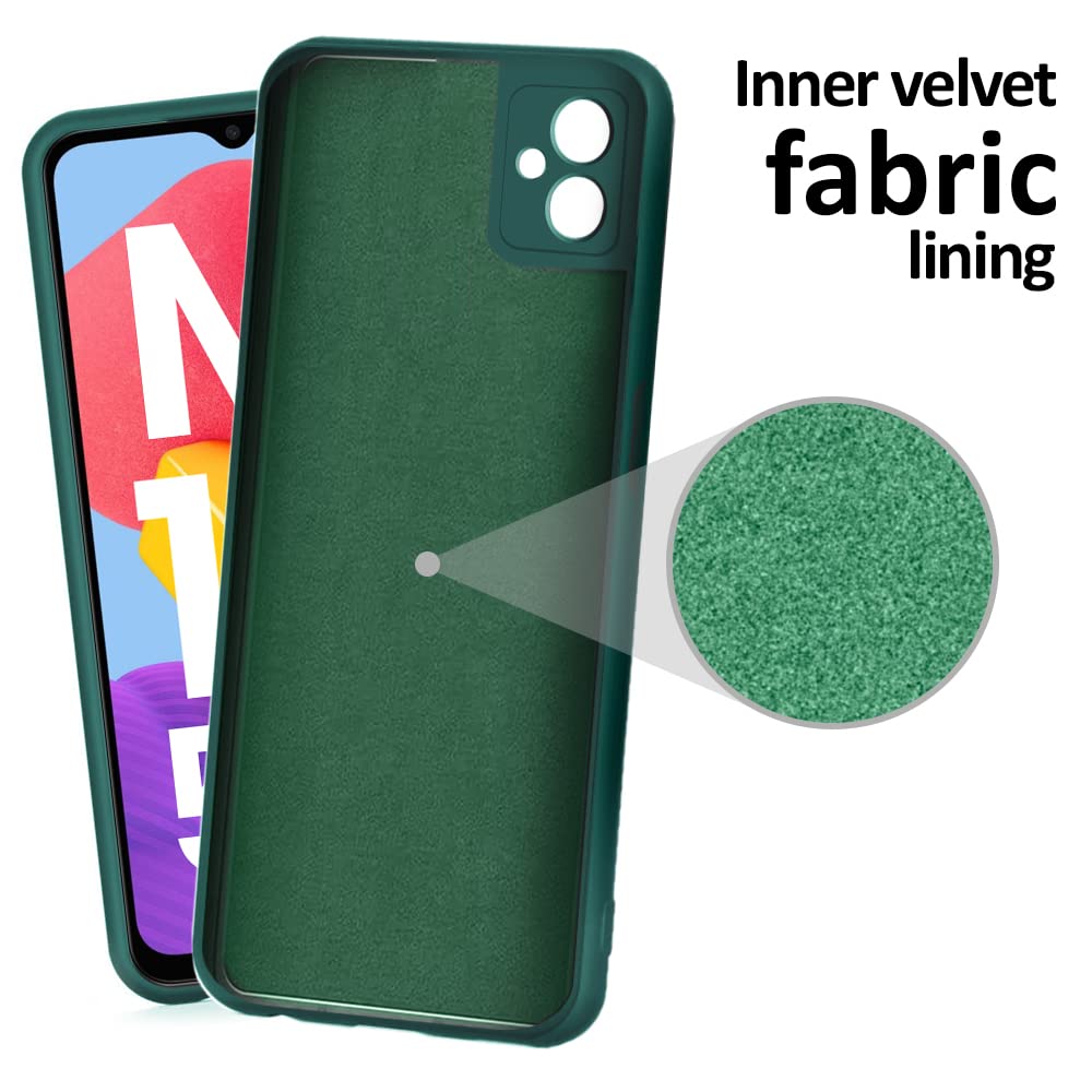 Slim Ultra Soft Rubberised Inner Velvet Fabric Lining Matte Silicone Flexible Back Cover Back Case with Camera Protection for Samsung Galaxy M13 5G (Green)