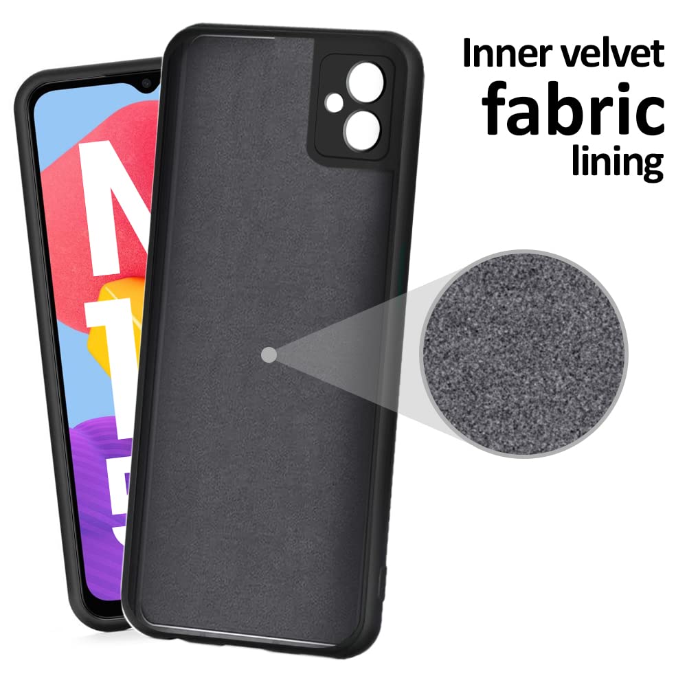 Slim Ultra Soft Rubberised Matte Silicone Flexible Camera Protection Back Case Cover with Inner Velvet Fabric Lining for Samsung Galaxy M13 5G- Black