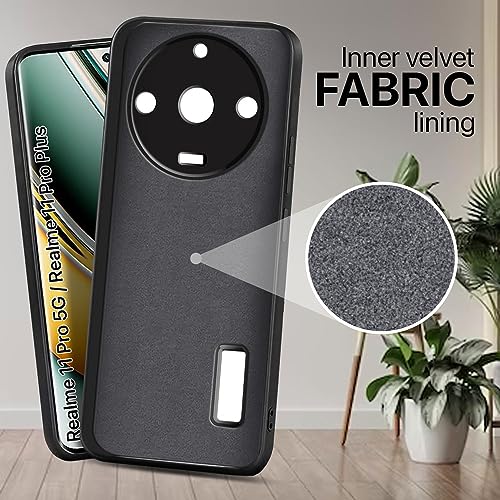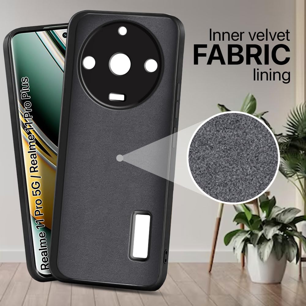 Soft Silicone Back Case Cover for Realme Narzo 60 PRO | 11 PRO | 11 PRO Plus 5G | Inner Velvet Fabric Lining | Matte Silicone Flexible Camera Protection Back Cover – Black