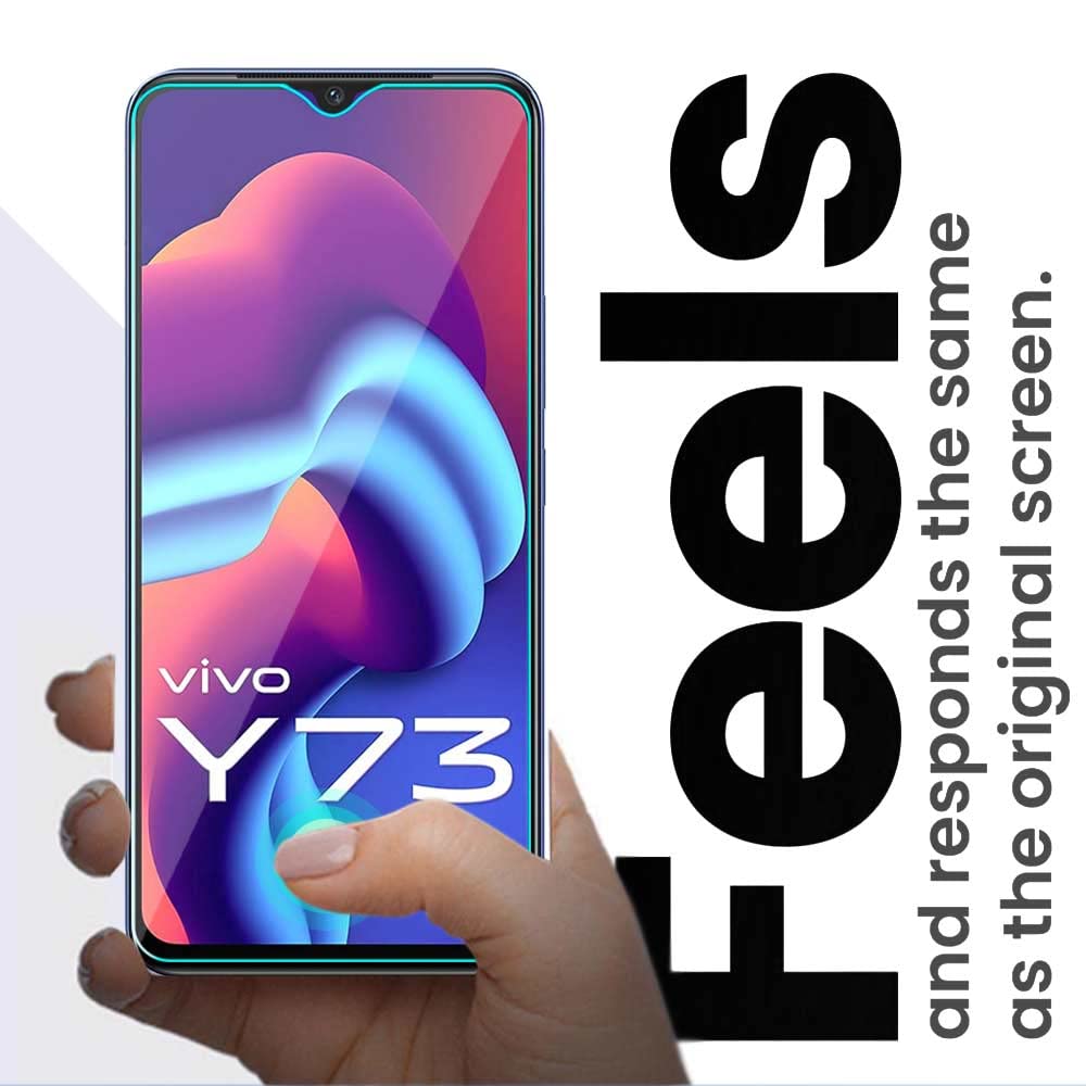 Tempered Glass Screen Protector Compatible for Vivo Y73 5G (Transparent) Full Screen Coverage (Except Edges) and Easy Installation Kit Pack of 2