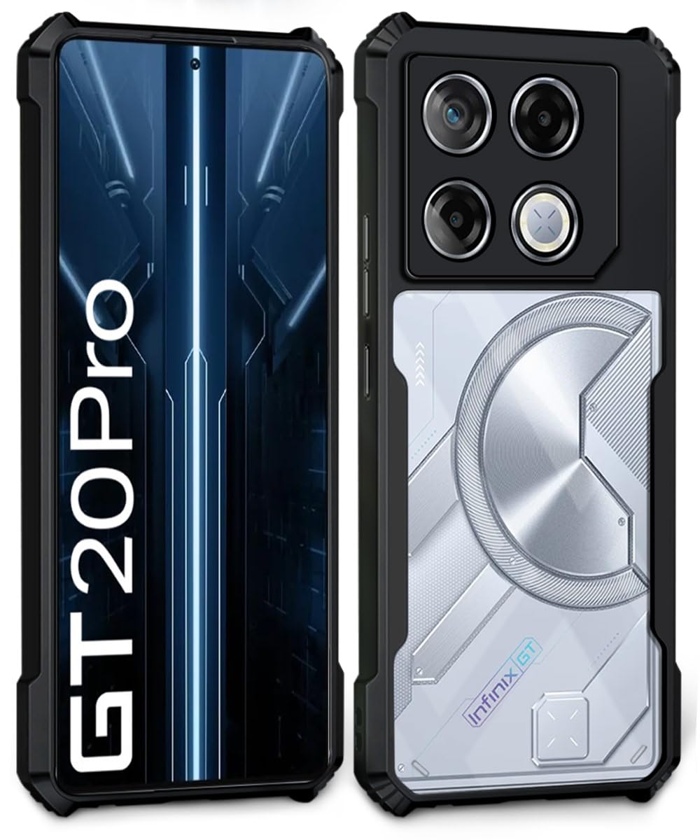 Thermoplastic Polyurethane Shock Proof Clear Protective Back Case for Infinix Gt 20 Pro-Airedge Technology|360 Degree Camera Protection|Transparent Hybrid Back Case Mobile Cover-Black