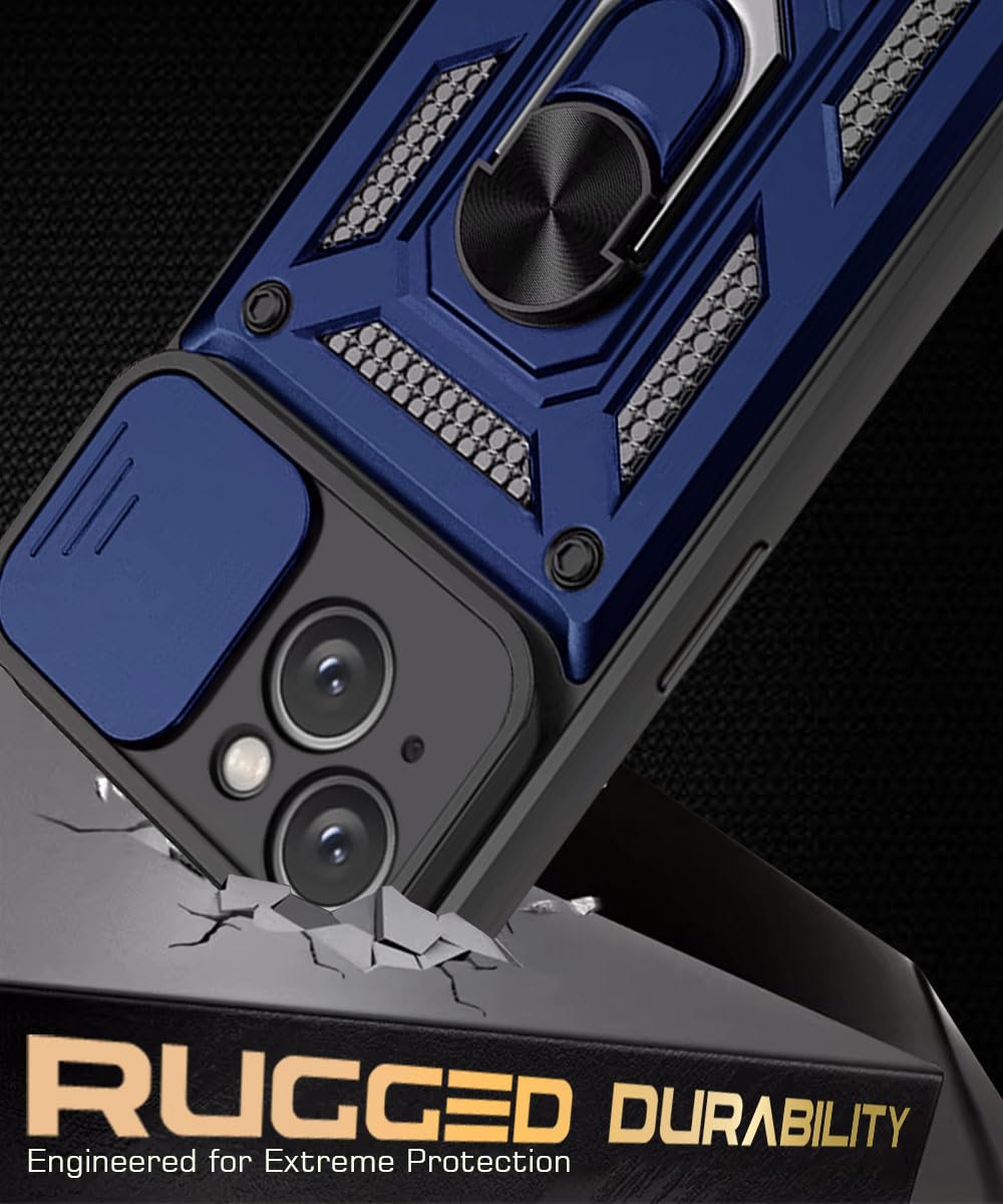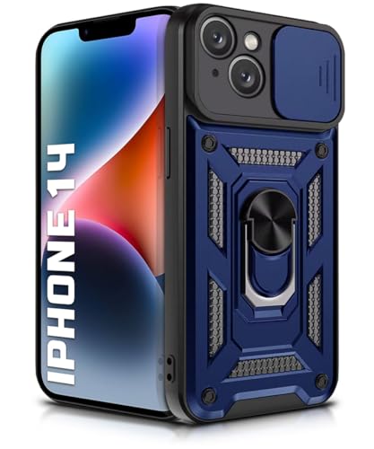 Tough Armor Bumper Mobile Back Case for iPhone 14 | Sliding Camera Shield Cover | Shock Proof 360? Protection | Hybrid PC + TPU | Ring Holder with Kickstand ? Blue