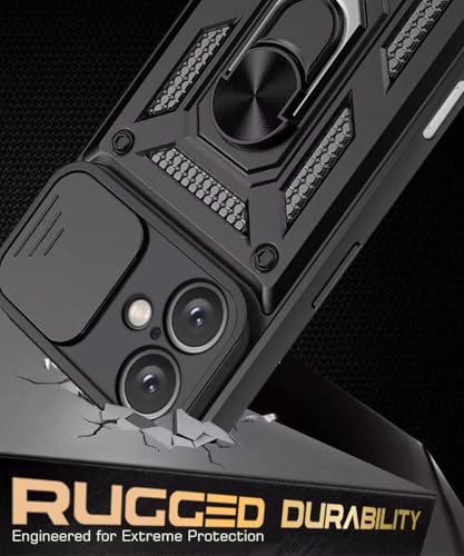 Tough Armor Bumper Mobile Back Case for iPhone 16 | Sliding Camera Shield Cover | Shock Proof 360? Protection | Hybrid PC + TPU | Ring Holder with Kickstand ? Black
