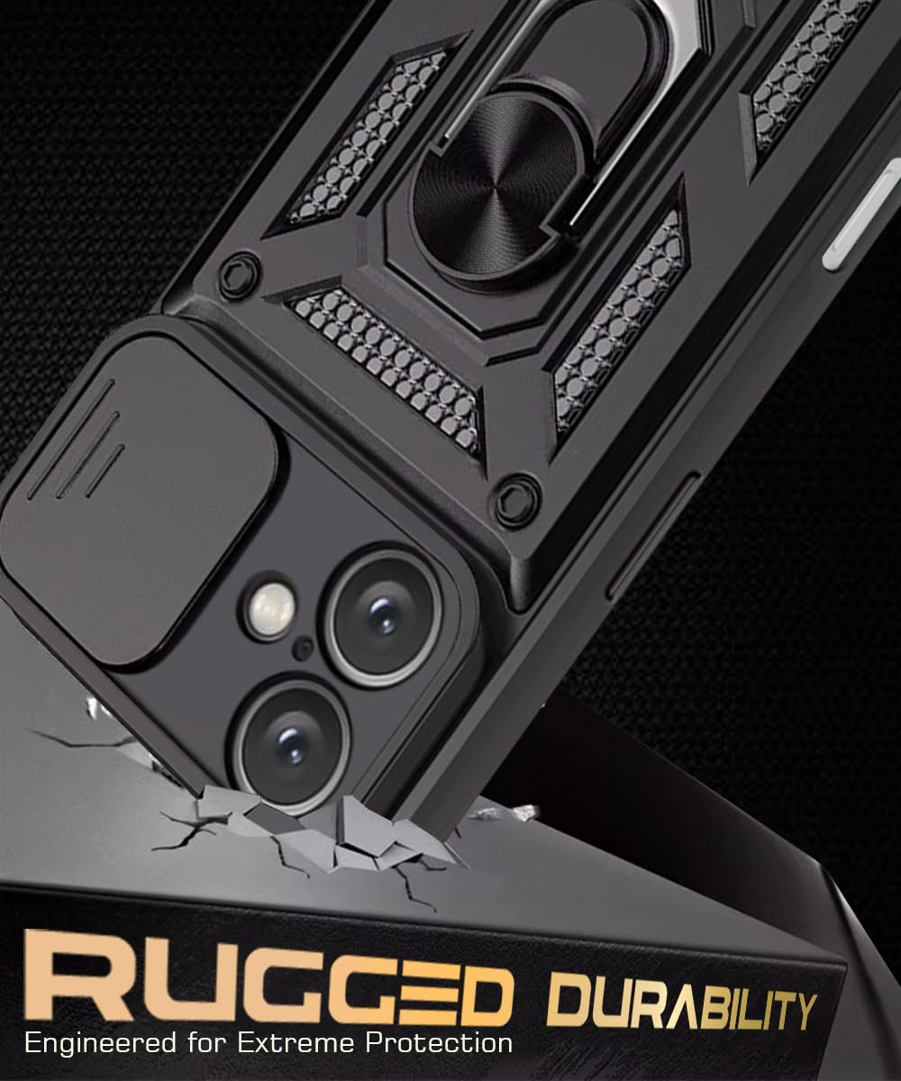 The Tough Armor Bumper Mobile Back Case for iPhone 16 | Sliding Camera Shield Cover | Shock Proof 360? Protection | Hybrid PC + TPU | Ring Holder with Kickstand ? Black is designed with premium quality materials to provide superior protection, durability, and style for your smartphone. It offers a perfect balance between functionality and aesthetics, ensuring your device stays safe from scratches, impacts, and daily wear. Engineered with precision, it features accurate cutouts for ports, buttons, and cameras, making it highly convenient for everyday use. The slim and lightweight design ensures that your device retains its sleek profile without adding unnecessary bulk. Whether it is a nano film tempered glass, a hybrid back case, or a camera lens protector, each product is created with attention to detail to enhance the user experience and extend the life of your smartphone. The material used ensures long-lasting clarity, anti-scratch performance, and resistance against fingerprints and smudges. It is the ideal choice for users who want both style and substance in their smartphone accessories. This product from reflects innovation and craftsmanship, making it a reliable accessory that safeguards your investment while maintaining modern appeal.