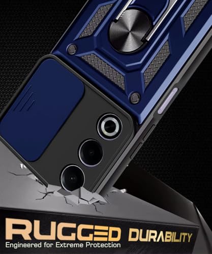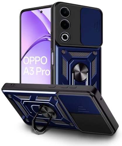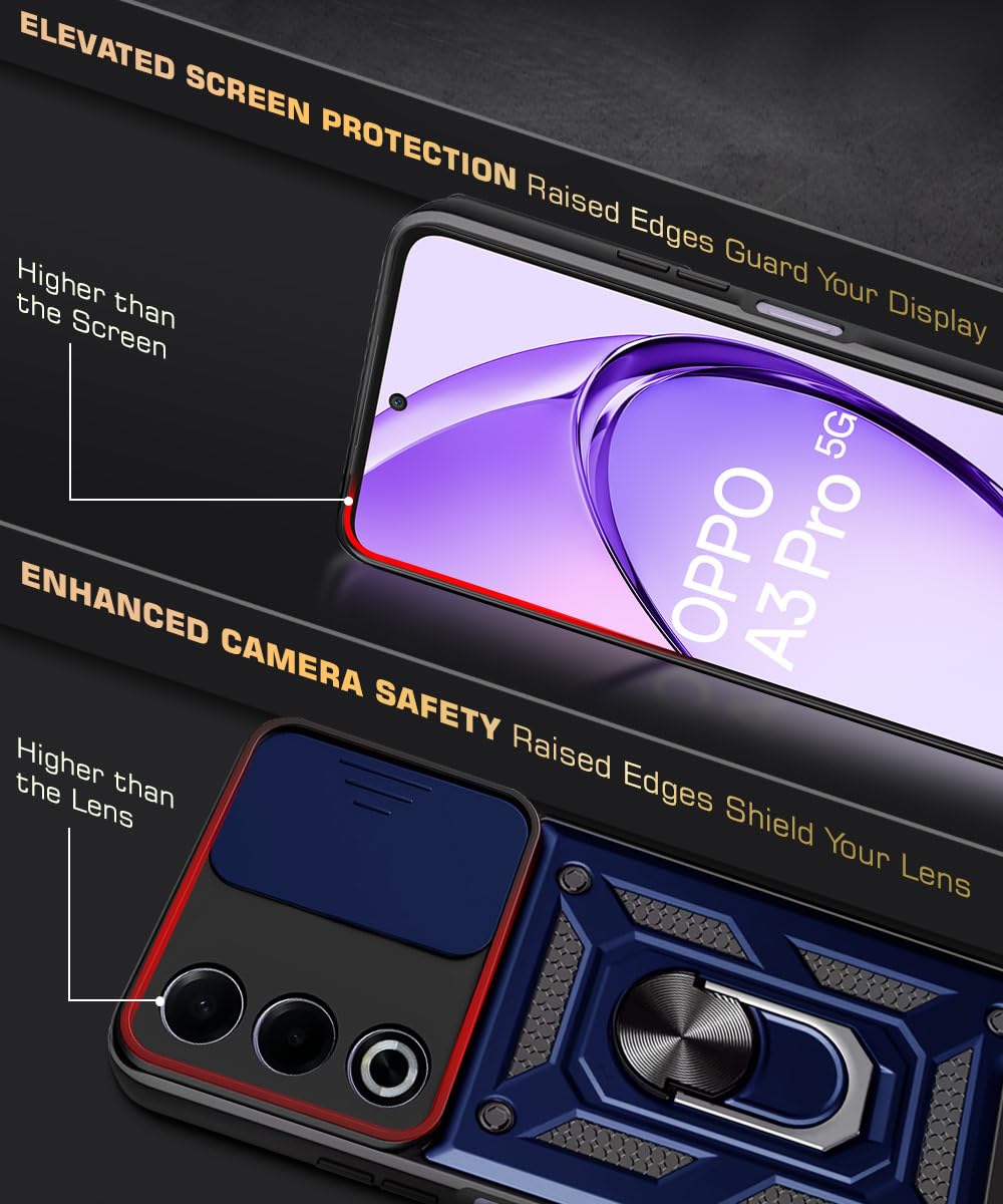 Tough Armor Bumper Mobile Back Case for Oppo A3 Pro 5G | Oppo K12x 5G | Sliding Camera Shield Cover | Shock Proof 360? Protection | Hybrid PC + TPU | Ring Holder with Kickstand ? Blue