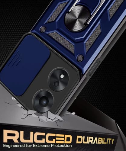 Tough Armor Bumper Mobile Back Case for Oppo A78 5G | Sliding Camera Shield Cover | Shock Proof 360? Protection | Hybrid PC + TPU | Ring Holder with Kickstand ? Blue