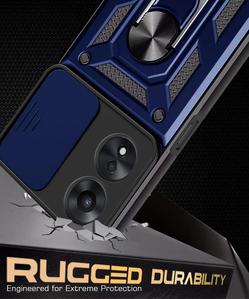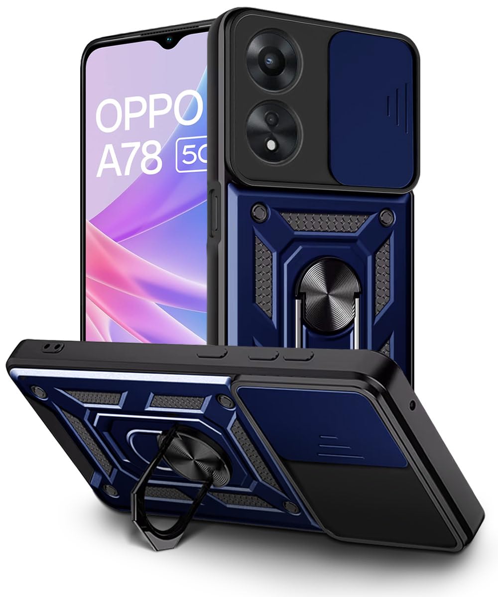 The Tough Armor Bumper Mobile Back Case for Oppo A78 5G | Sliding Camera Shield Cover | Shock Proof 360? Protection | Hybrid PC + TPU | Ring Holder with Kickstand ? Blue is designed with premium quality materials to provide superior protection, durability, and style for your smartphone. It offers a perfect balance between functionality and aesthetics, ensuring your device stays safe from scratches, impacts, and daily wear. Engineered with precision, it features accurate cutouts for ports, buttons, and cameras, making it highly convenient for everyday use. The slim and lightweight design ensures that your device retains its sleek profile without adding unnecessary bulk. Whether it is a nano film tempered glass, a hybrid back case, or a camera lens protector, each product is created with attention to detail to enhance the user experience and extend the life of your smartphone. The material used ensures long-lasting clarity, anti-scratch performance, and resistance against fingerprints and smudges. It is the ideal choice for users who want both style and substance in their smartphone accessories. This product from reflects innovation and craftsmanship, making it a reliable accessory that safeguards your investment while maintaining modern appeal.