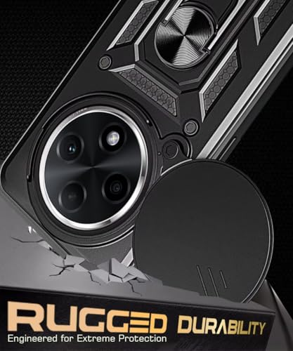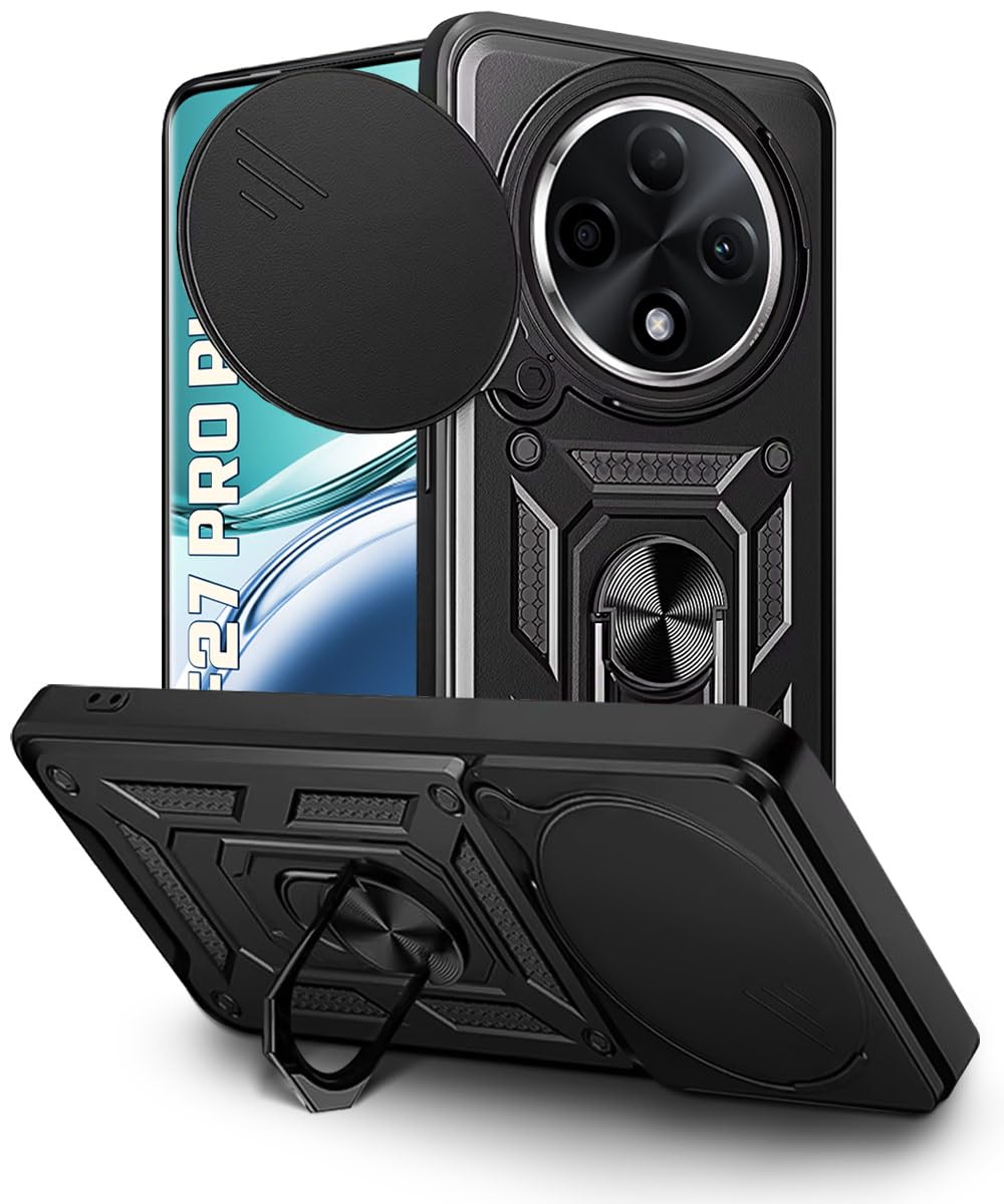Tough Armor Bumper Mobile Back Case for Oppo F27 Pro Plus 5G | Sliding Camera Shield Cover | Shock Proof 360? Protection | Hybrid PC + TPU | Ring Holder with Kickstand ? Black