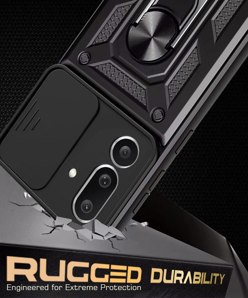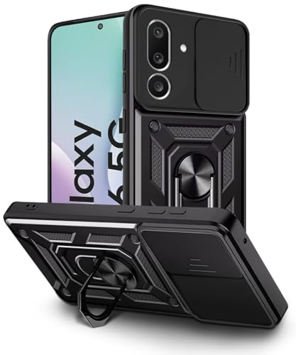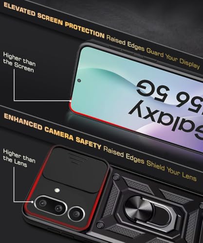 Tough Armor Bumper Mobile Back Case for Samsung Galaxy M56 5G | Galaxy F56 5G | Sliding Camera Cover | Shockproof 360? Protection | Hybrid PC + TPU | Ring Holder with Kickstand ? Black