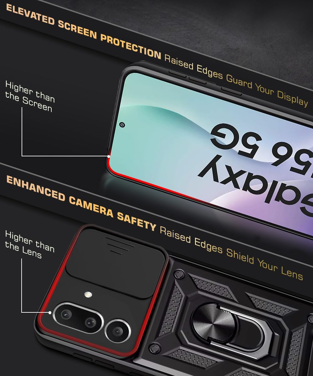 The Tough Armor Bumper Mobile Back Case for Samsung Galaxy M56 5G | Galaxy F56 5G | Sliding Camera Cover | Shockproof 360? Protection | Hybrid PC + TPU | Ring Holder with Kickstand ? Black is designed with premium quality materials to provide superior protection, durability, and style for your smartphone. It offers a perfect balance between functionality and aesthetics, ensuring your device stays safe from scratches, impacts, and daily wear. Engineered with precision, it features accurate cutouts for ports, buttons, and cameras, making it highly convenient for everyday use. The slim and lightweight design ensures that your device retains its sleek profile without adding unnecessary bulk. Whether it is a nano film tempered glass, a hybrid back case, or a camera lens protector, each product is created with attention to detail to enhance the user experience and extend the life of your smartphone. The material used ensures long-lasting clarity, anti-scratch performance, and resistance against fingerprints and smudges. It is the ideal choice for users who want both style and substance in their smartphone accessories. This product from reflects innovation and craftsmanship, making it a reliable accessory that safeguards your investment while maintaining modern appeal.
