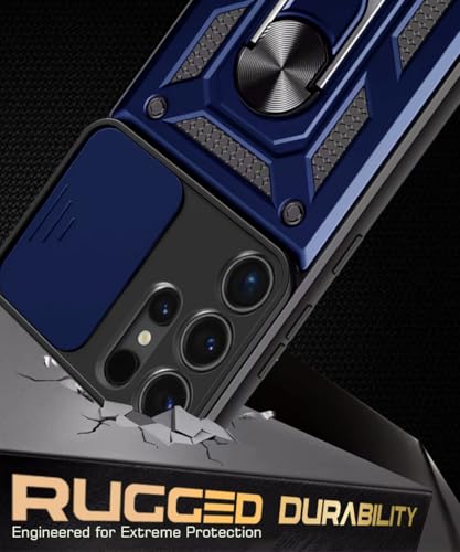 Tough Armor Bumper Mobile Back Case for Samsung Galaxy S24 Ultra 5G | Sliding Camera Shield Cover | Shock Proof 360? Protection | Hybrid PC + TPU | Ring Holder with Kickstand Blue