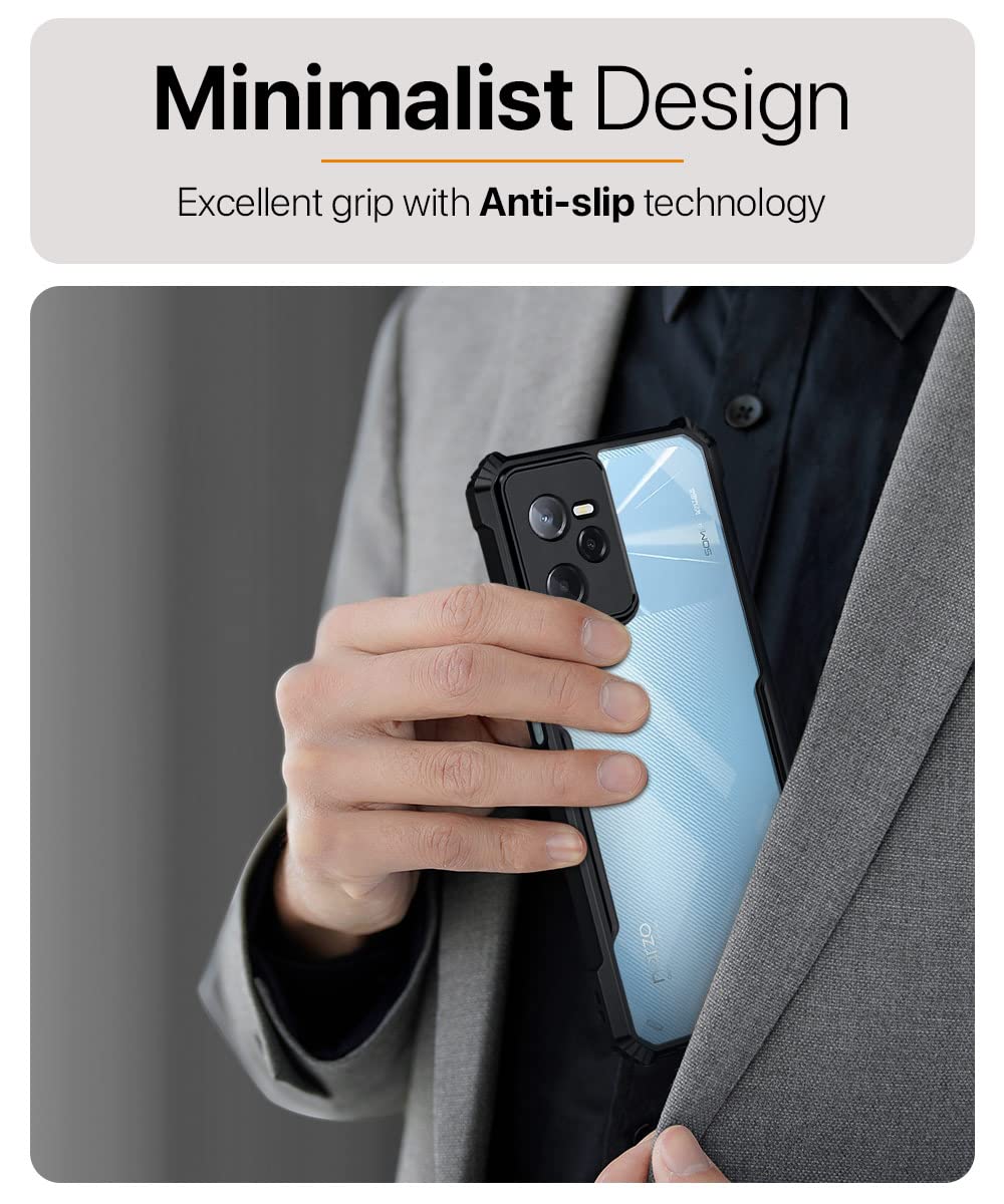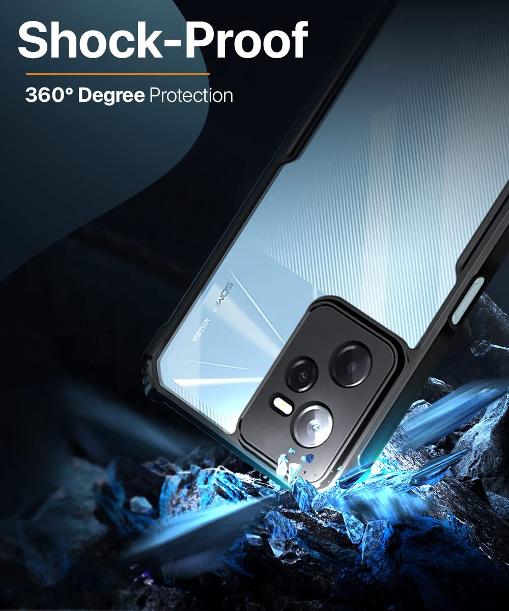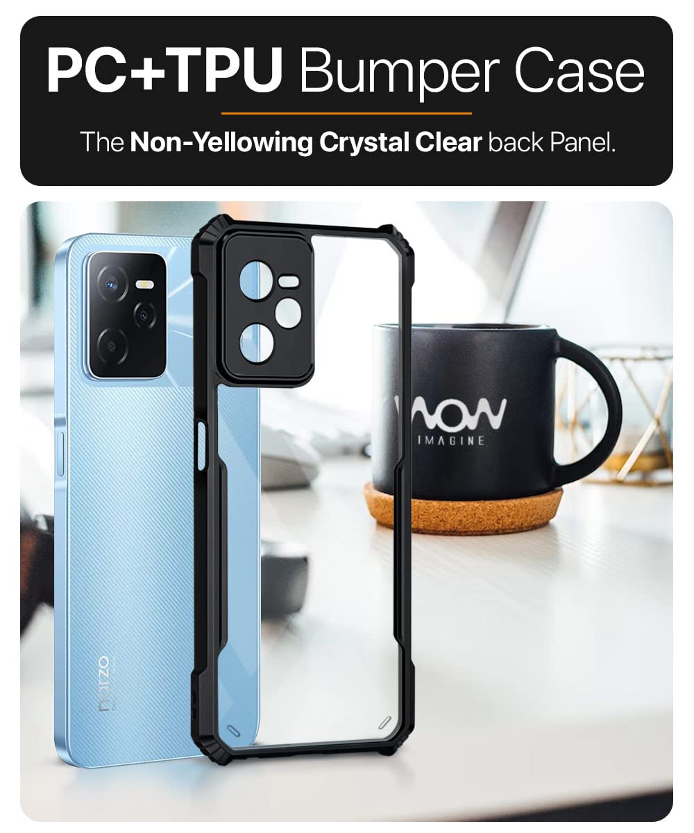 The TPU+PC Shock Proof Clear Protective Back Case For Realme Narzo 50A Prime | Realme C35 – Airedge Technology | 360 Degree Camera Protection | Transparent Hybrid Back Case Mobile Cover-Black is designed with premium quality materials to provide superior protection, durability, and style for your smartphone. It offers a perfect balance between functionality and aesthetics, ensuring your device stays safe from scratches, impacts, and daily wear. Engineered with precision, it features accurate cutouts for ports, buttons, and cameras, making it highly convenient for everyday use. The slim and lightweight design ensures that your device retains its sleek profile without adding unnecessary bulk. Whether it is a nano film tempered glass, a hybrid back case, or a camera lens protector, each product is created with attention to detail to enhance the user experience and extend the life of your smartphone. The material used ensures long-lasting clarity, anti-scratch performance, and resistance against fingerprints and smudges. It is the ideal choice for users who want both style and substance in their smartphone accessories. This product from reflects innovation and craftsmanship, making it a reliable accessory that safeguards your investment while maintaining modern appeal.