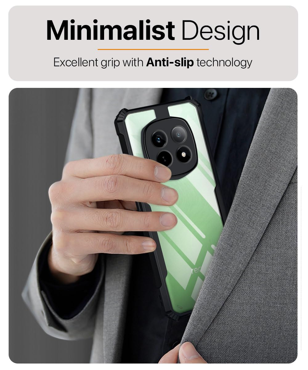 The TPU+PC Shock Proof Clear Protective Back Case For Realme P2 Pro 5G – Airedge Technology | 360 Degree Camera Protection | Transparent Hybrid Back Case Mobile Cover – Black is designed with premium quality materials to provide superior protection, durability, and style for your smartphone. It offers a perfect balance between functionality and aesthetics, ensuring your device stays safe from scratches, impacts, and daily wear. Engineered with precision, it features accurate cutouts for ports, buttons, and cameras, making it highly convenient for everyday use. The slim and lightweight design ensures that your device retains its sleek profile without adding unnecessary bulk. Whether it is a nano film tempered glass, a hybrid back case, or a camera lens protector, each product is created with attention to detail to enhance the user experience and extend the life of your smartphone. The material used ensures long-lasting clarity, anti-scratch performance, and resistance against fingerprints and smudges. It is the ideal choice for users who want both style and substance in their smartphone accessories. This product from reflects innovation and craftsmanship, making it a reliable accessory that safeguards your investment while maintaining modern appeal.