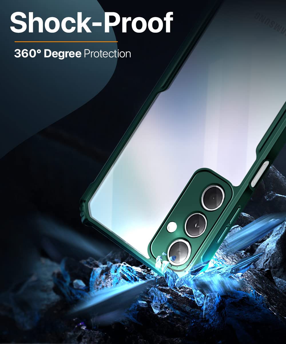 The TPU+PC Shock Proof Clear Protective Back Case For Samsung Galaxy M54 | F54 5G – Airedge Technology | 360 Degree Camera Protection | Transparent Hybrid Back Case Mobile Cover – Green is designed with premium quality materials to provide superior protection, durability, and style for your smartphone. It offers a perfect balance between functionality and aesthetics, ensuring your device stays safe from scratches, impacts, and daily wear. Engineered with precision, it features accurate cutouts for ports, buttons, and cameras, making it highly convenient for everyday use. The slim and lightweight design ensures that your device retains its sleek profile without adding unnecessary bulk. Whether it is a nano film tempered glass, a hybrid back case, or a camera lens protector, each product is created with attention to detail to enhance the user experience and extend the life of your smartphone. The material used ensures long-lasting clarity, anti-scratch performance, and resistance against fingerprints and smudges. It is the ideal choice for users who want both style and substance in their smartphone accessories. This product from reflects innovation and craftsmanship, making it a reliable accessory that safeguards your investment while maintaining modern appeal.
