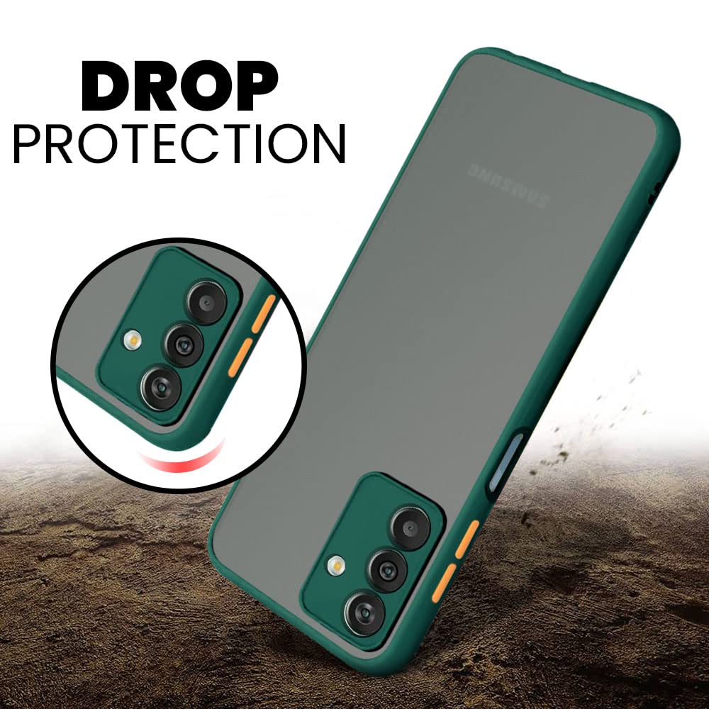 Translucent Hybrid Back Case Cover for Samsung Galaxy M13 4G | F13 4G Smoked Matte Back | 360 Degree Protection | Protective Hard Case (Green Bumper)