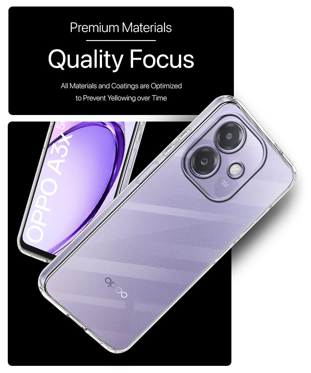 Transparent Back Cover Case Compatible with Oppo A3x 5G, A3x 4G & A3 5G Shockproof TPU Silicone Mobile Cover with Raised Bumps for Full Body & Camera Protection Clear/Transparent