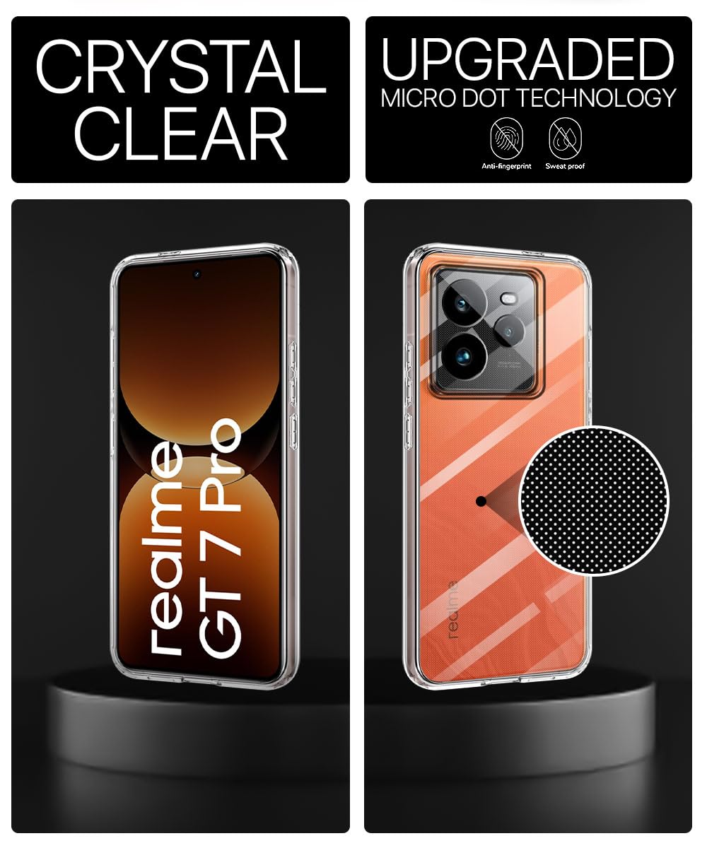 Transparent Back Cover Case for Compatible with Realme GT 7 Pro 5G | Raised Bumps for Full Device & Camera Protection Shockproof TPU Silicone Back Case Mobile Cover Transparent