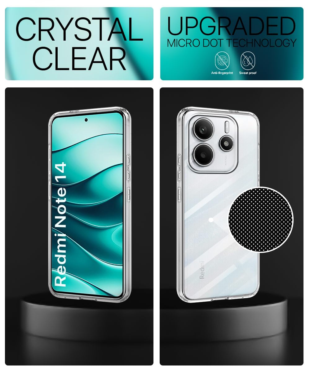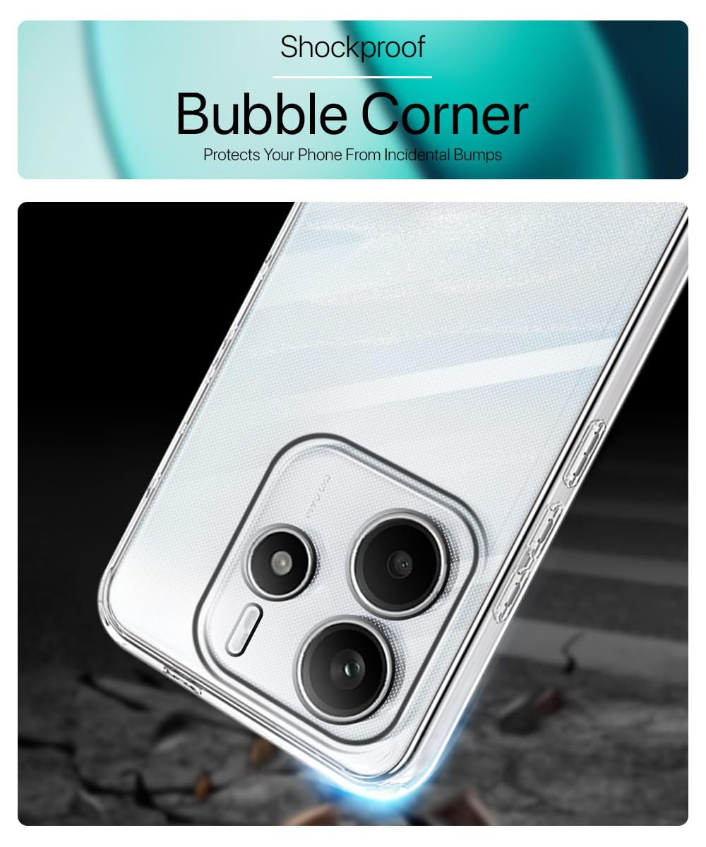 Transparent Back Cover Case for Compatible with Redmi Note 14 5G | Raised Bumps for Full Device & Camera Protection Shockproof TPU Silicone Back Case Mobile Cover Transparent