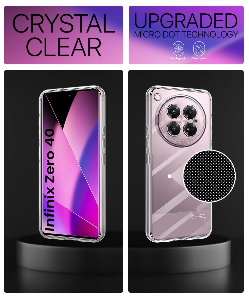Transparent Back Cover Case for Infinix Zero 40 5G | Raised Bumps for Full Device & Camera Protection Shockproof TPU Silicone Back Case Mobile Cover Transparent