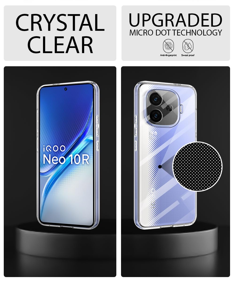 Transparent Back Cover Case for iQOO Neo 10R 5G | Raised Bumps for Full Device & Camera Protection Shockproof TPU Silicone Back Case Mobile Cover Transparent