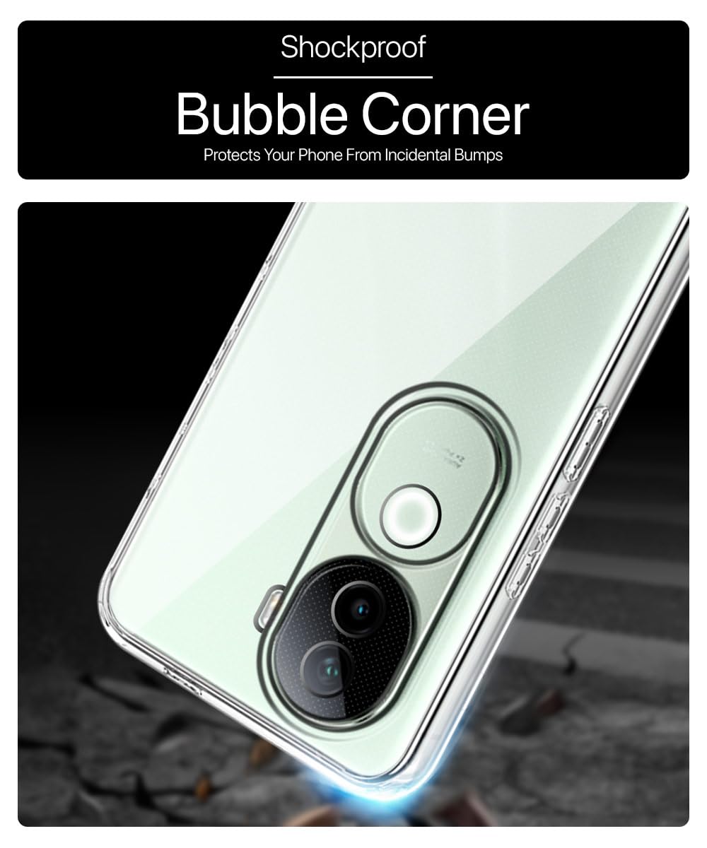 The Transparent Back Cover Case for iQOO Z9s 5G | Vivo V40e 5G | Raised Bumps for Full Device & Camera Protection Shockproof TPU Silicone Back Case Mobile Cover ? Transparent is designed with premium quality materials to provide superior protection, durability, and style for your smartphone. It offers a perfect balance between functionality and aesthetics, ensuring your device stays safe from scratches, impacts, and daily wear. Engineered with precision, it features accurate cutouts for ports, buttons, and cameras, making it highly convenient for everyday use. The slim and lightweight design ensures that your device retains its sleek profile without adding unnecessary bulk. Whether it is a nano film tempered glass, a hybrid back case, or a camera lens protector, each product is created with attention to detail to enhance the user experience and extend the life of your smartphone. The material used ensures long-lasting clarity, anti-scratch performance, and resistance against fingerprints and smudges. It is the ideal choice for users who want both style and substance in their smartphone accessories. This product from reflects innovation and craftsmanship, making it a reliable accessory that safeguards your investment while maintaining modern appeal.