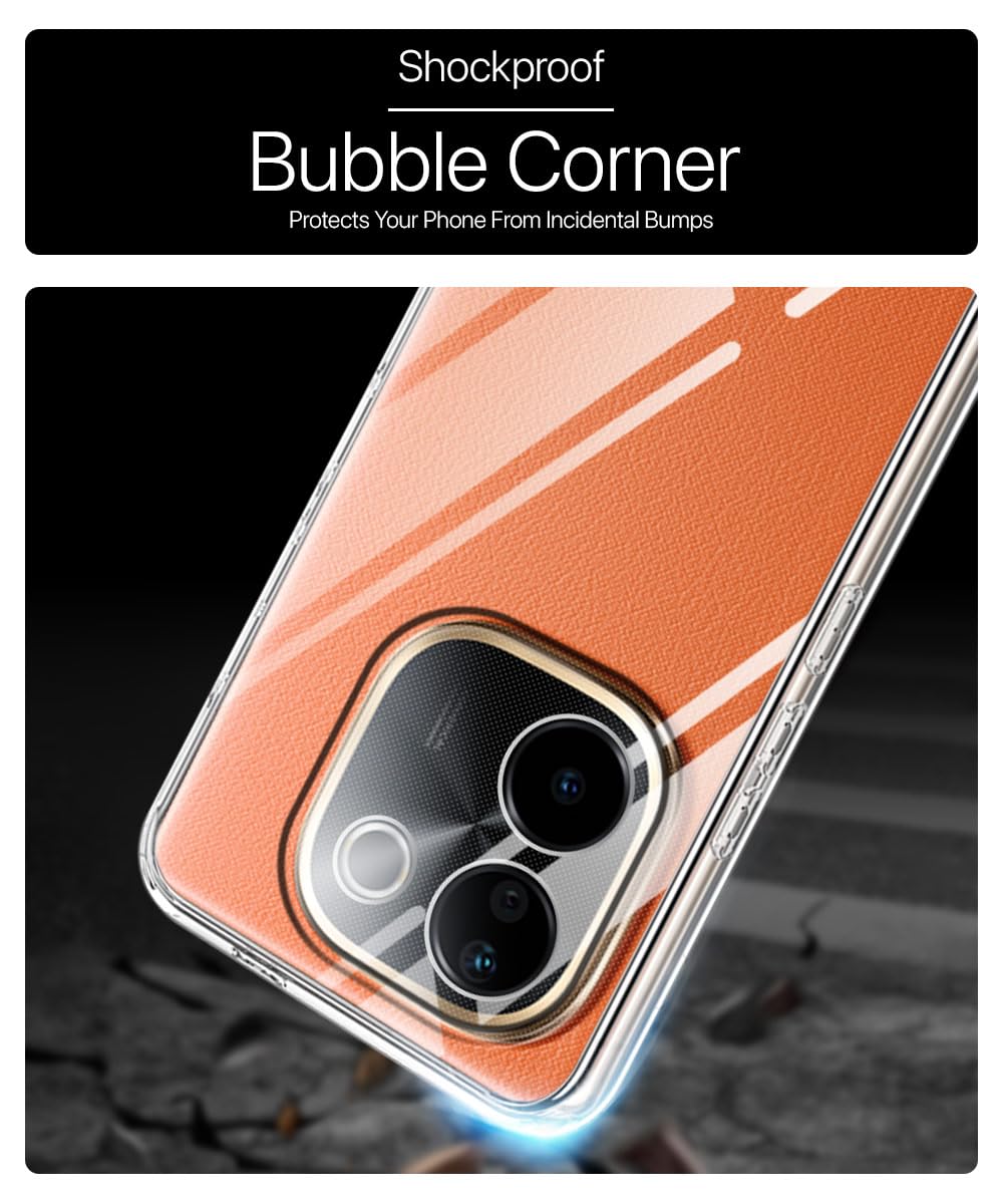 Transparent Back Cover Case for iQOO Z9s Pro 5G | Vivo T3 Pro 5G | Raised Bumps for Full Device & Camera Protection Shockproof TPU Silicone Back Case Mobile Cover Transparent is designed with premium quality materials to provide superior protection, durability, and style for your smartphone. It offers a perfect balance between functionality and aesthetics, ensuring your device stays safe from scratches, impacts, and daily wear. Engineered with precision, it features accurate cutouts for ports, buttons, and cameras, making it highly convenient for everyday use. The slim and lightweight design ensures that your device retains its sleek profile without adding unnecessary bulk. Whether it is a nano film tempered glass, a hybrid back case, or a camera lens protector, each product is created with attention to detail to enhance the user experience and extend the life of your smartphone. The material used ensures longlasting clarity, antiscratch performance, and resistance against fingerprints and smudges. It is the ideal choice for users who want both style and substance in their smartphone accessories. This product from reflects innovation and craftsmanship, making it a reliable accessory that safeguards your investment while maintaining modern appeal.
