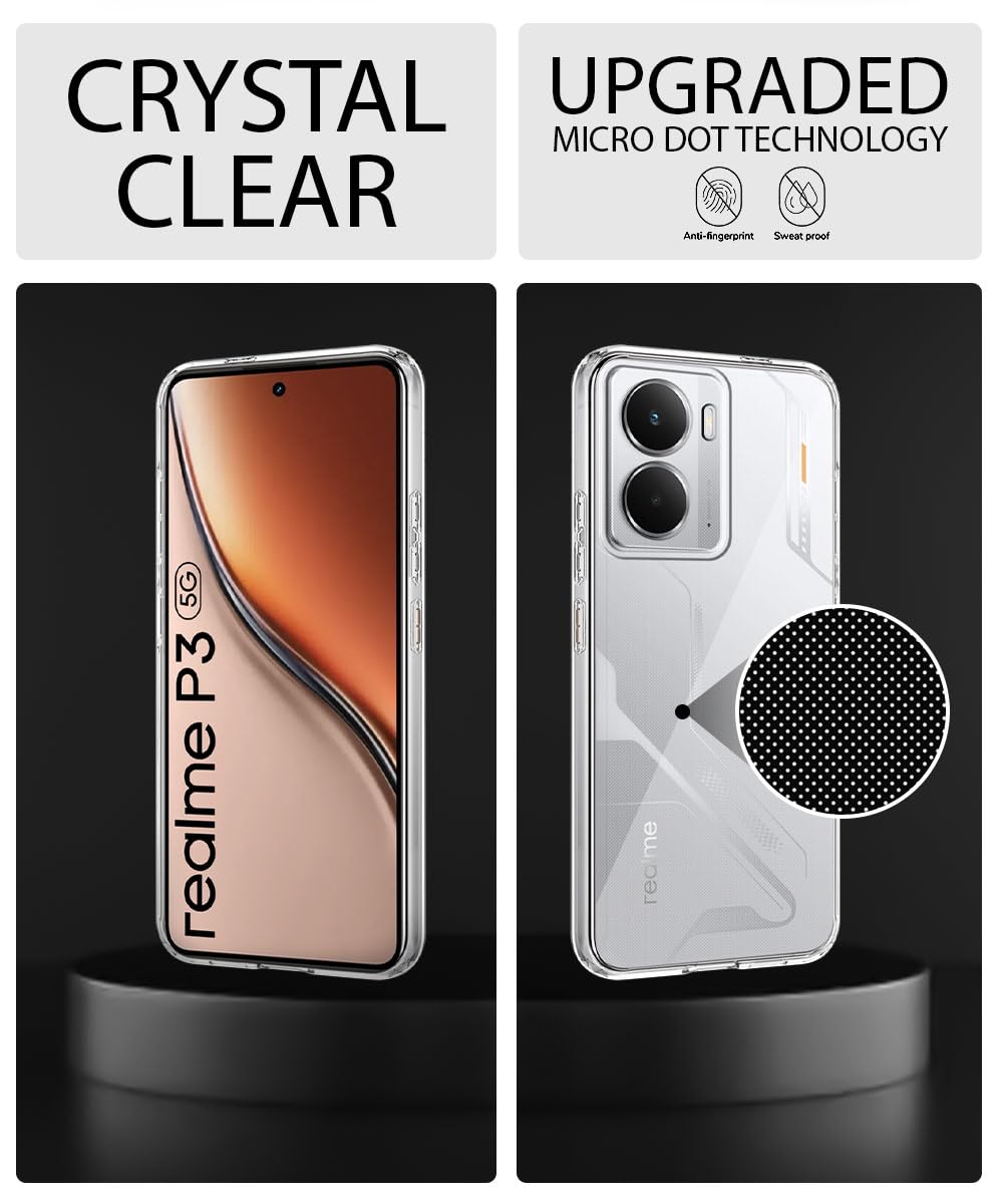 The Transparent Back Cover Case for Realme P3 5G | Raised Bumps for Full Device & Camera Protection Shockproof TPU Silicone Back Case Mobile Cover ? Transparent is designed with premium quality materials to provide superior protection, durability, and style for your smartphone. It offers a perfect balance between functionality and aesthetics, ensuring your device stays safe from scratches, impacts, and daily wear. Engineered with precision, it features accurate cutouts for ports, buttons, and cameras, making it highly convenient for everyday use. The slim and lightweight design ensures that your device retains its sleek profile without adding unnecessary bulk. Whether it is a nano film tempered glass, a hybrid back case, or a camera lens protector, each product is created with attention to detail to enhance the user experience and extend the life of your smartphone. The material used ensures long-lasting clarity, anti-scratch performance, and resistance against fingerprints and smudges. It is the ideal choice for users who want both style and substance in their smartphone accessories. This product from reflects innovation and craftsmanship, making it a reliable accessory that safeguards your investment while maintaining modern appeal.