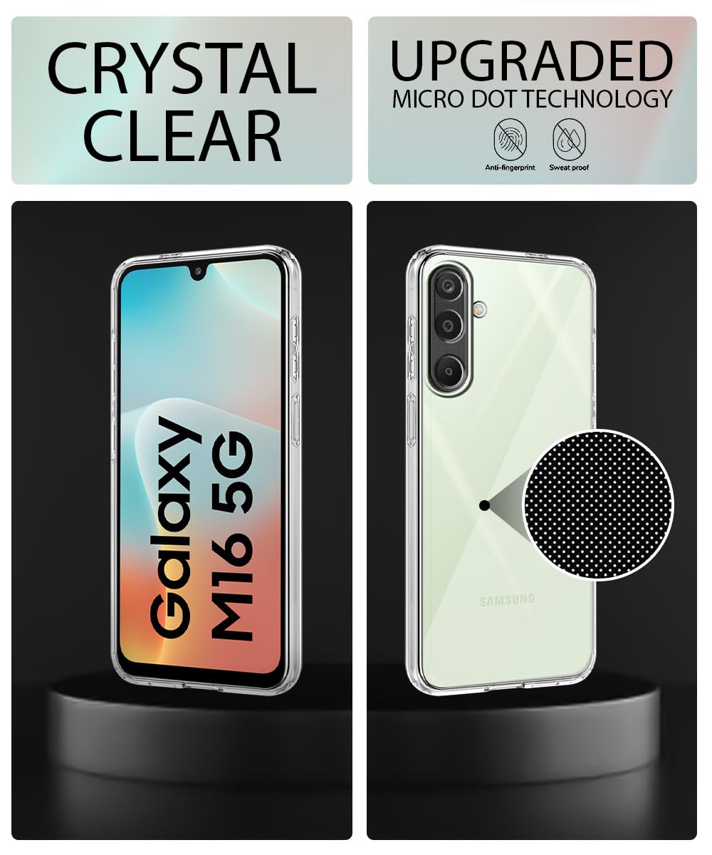 Transparent Back Cover Case for Samsung Galaxy M16 5G | Galaxy F16 5G | Raised Bumps for Full Device & Camera Protection Shockproof TPU Silicone Back Case Mobile Cover Transparent